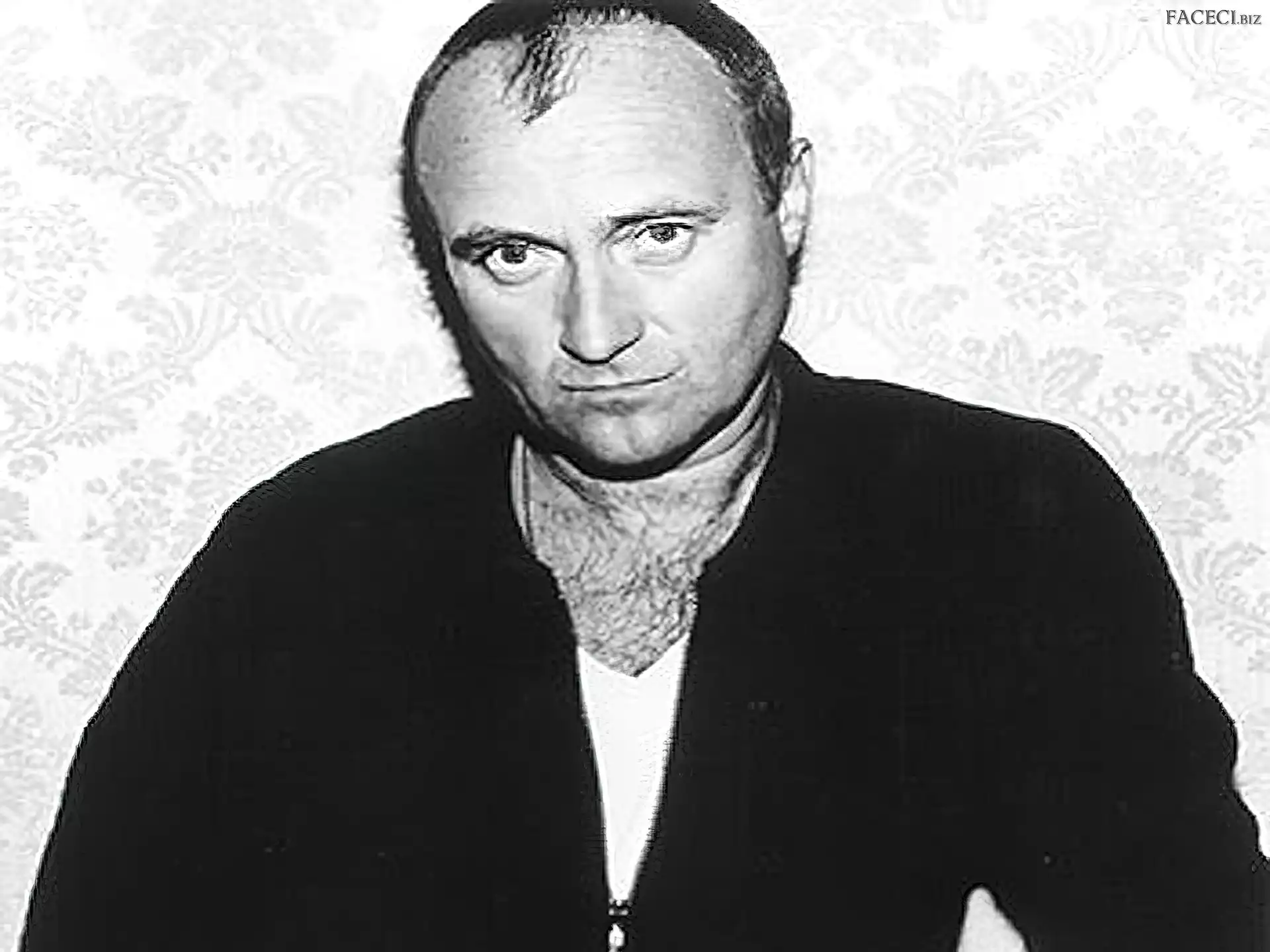Philip David Charles Collins Twarz, Phil Collins Philip David Charles Collins Gwiazda, Phil Collins Mikrofon, Phil Collins Mikrofon, Phil Collins Podkoszulek, Phil Collins, Biały Oczy, Phil Collins